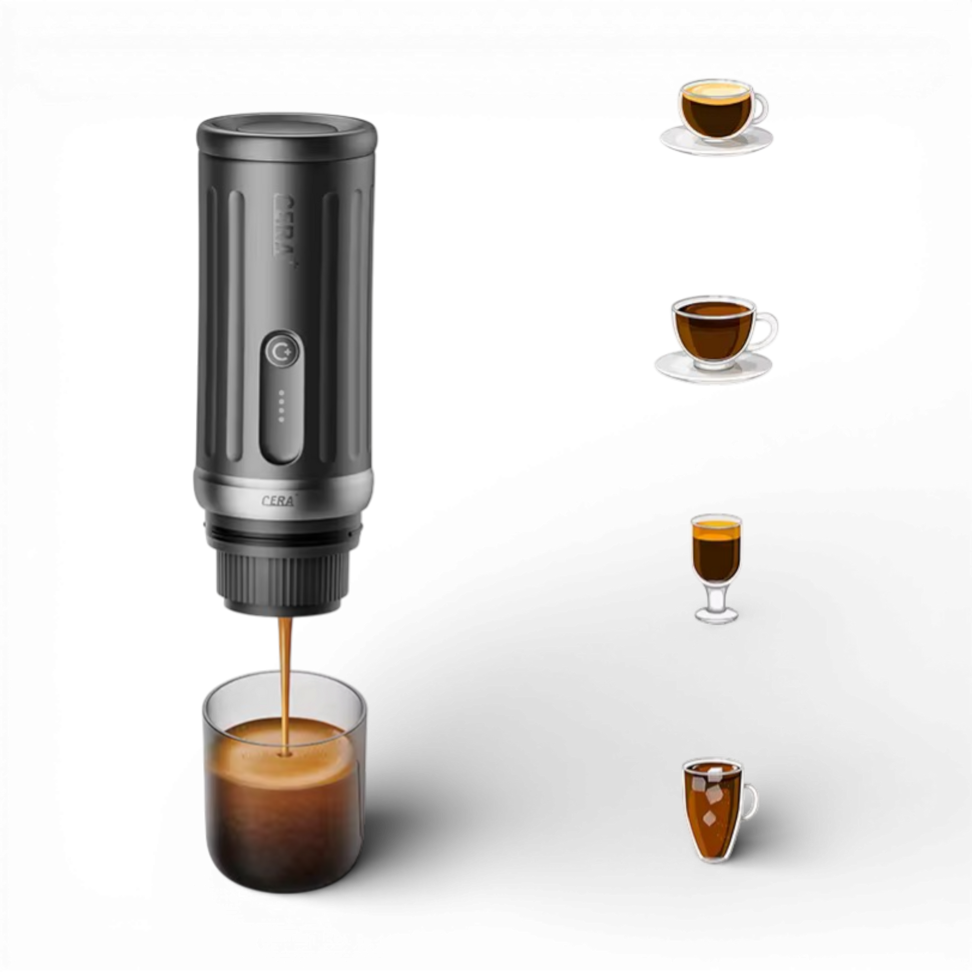 The CERA+ PCM03S Portable Coffee Machine delivers rich espresso and cappuccino wherever you are. Powered by advanced MCR ceramic heating technology and 20-bar pressure, it heats in minutes and extracts full flavor with precision. Designed for travel, car use, home, or office, it combines powerful performance with true portability.